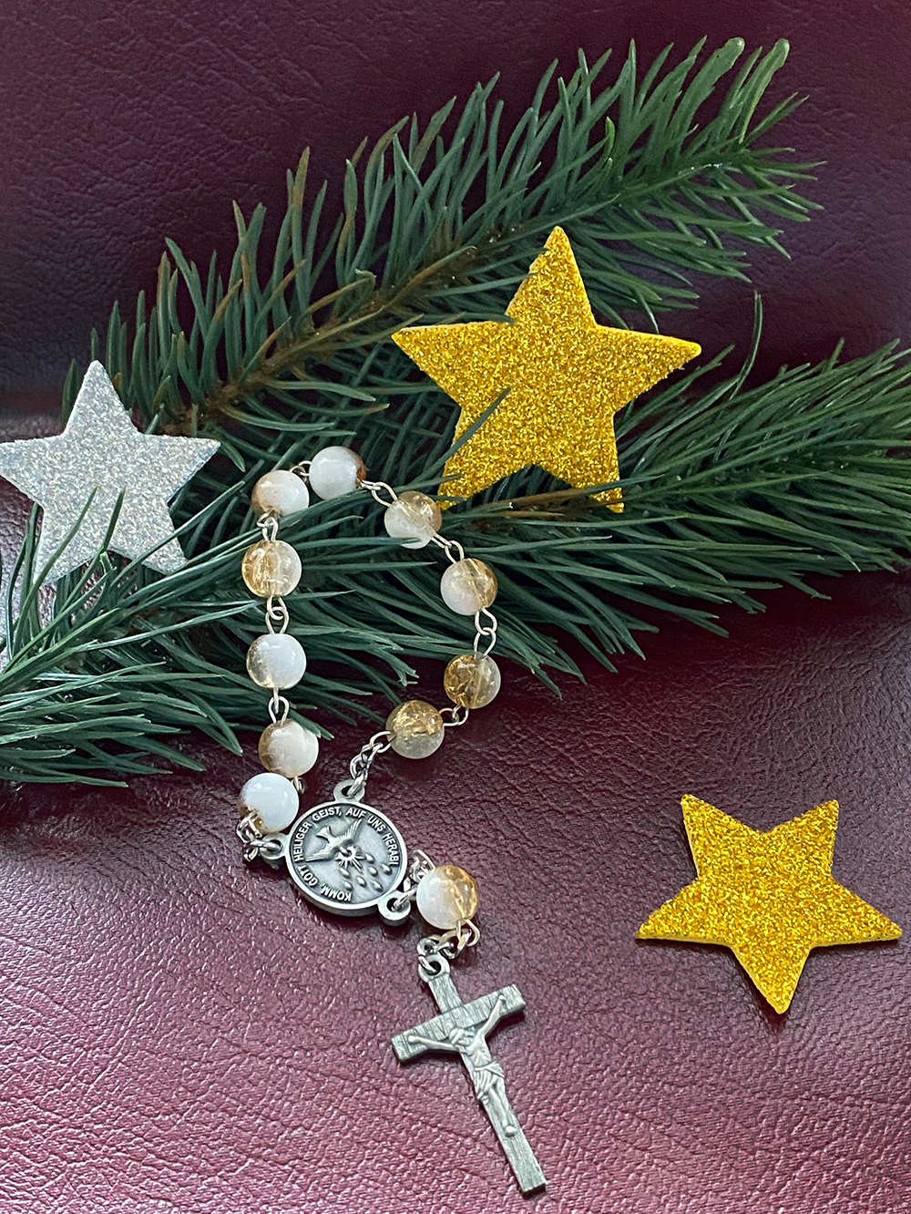 Zehner-Rosenkranz Glaskristall bernstein-weiss